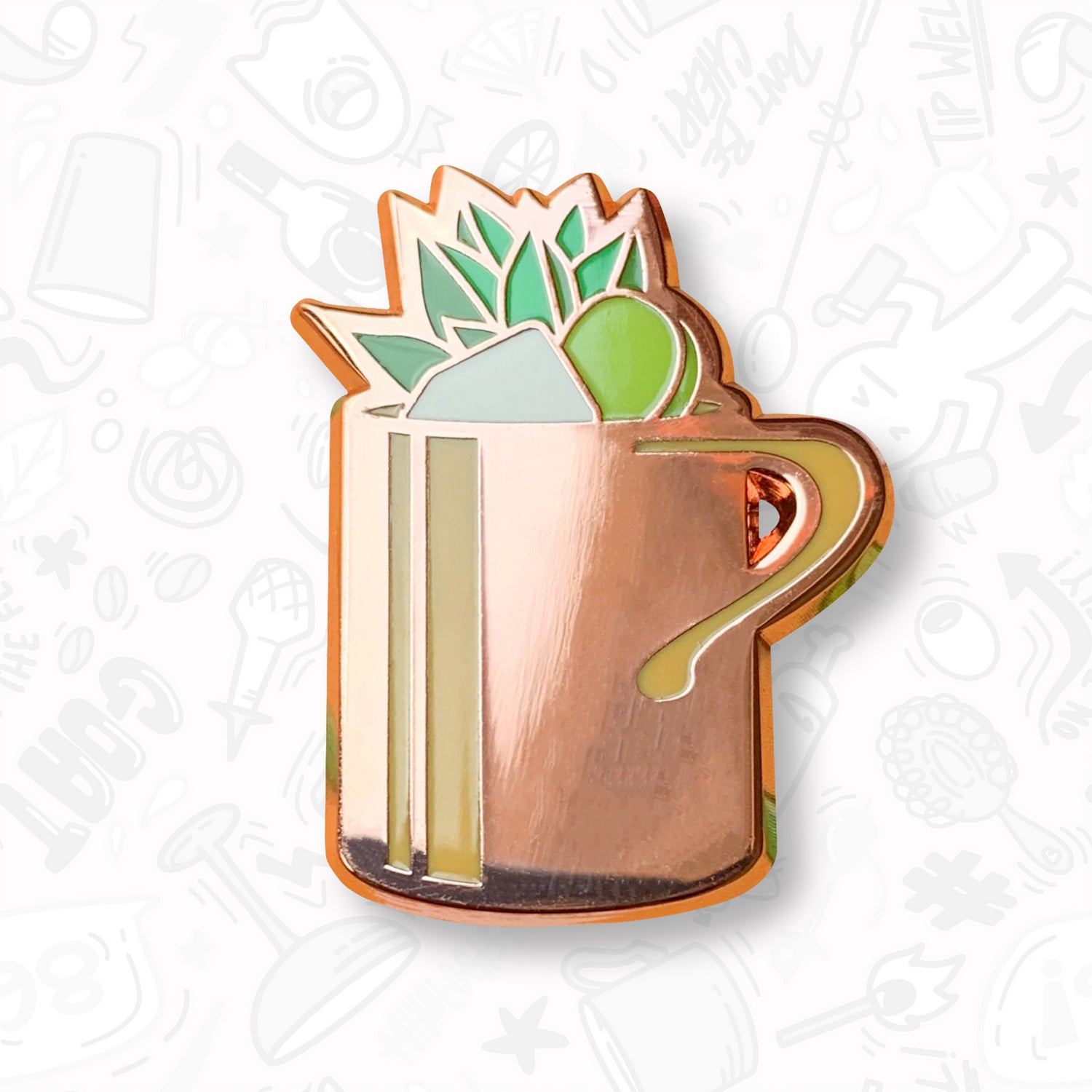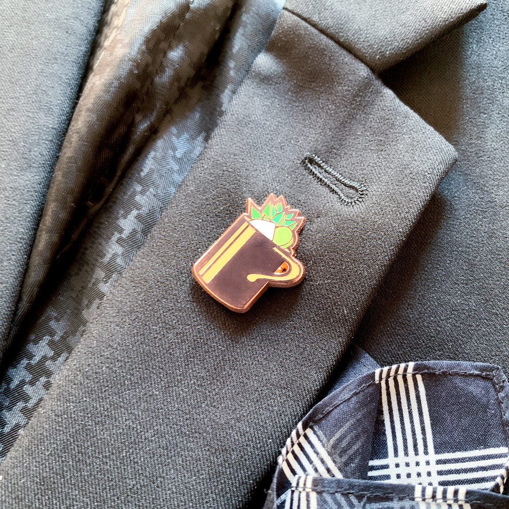 A little spice never hurts, especially when it's the Moscow Mule hard enamel pin. Make your next outing a special one by wearing this popular mixed drink on your outfit or bag.