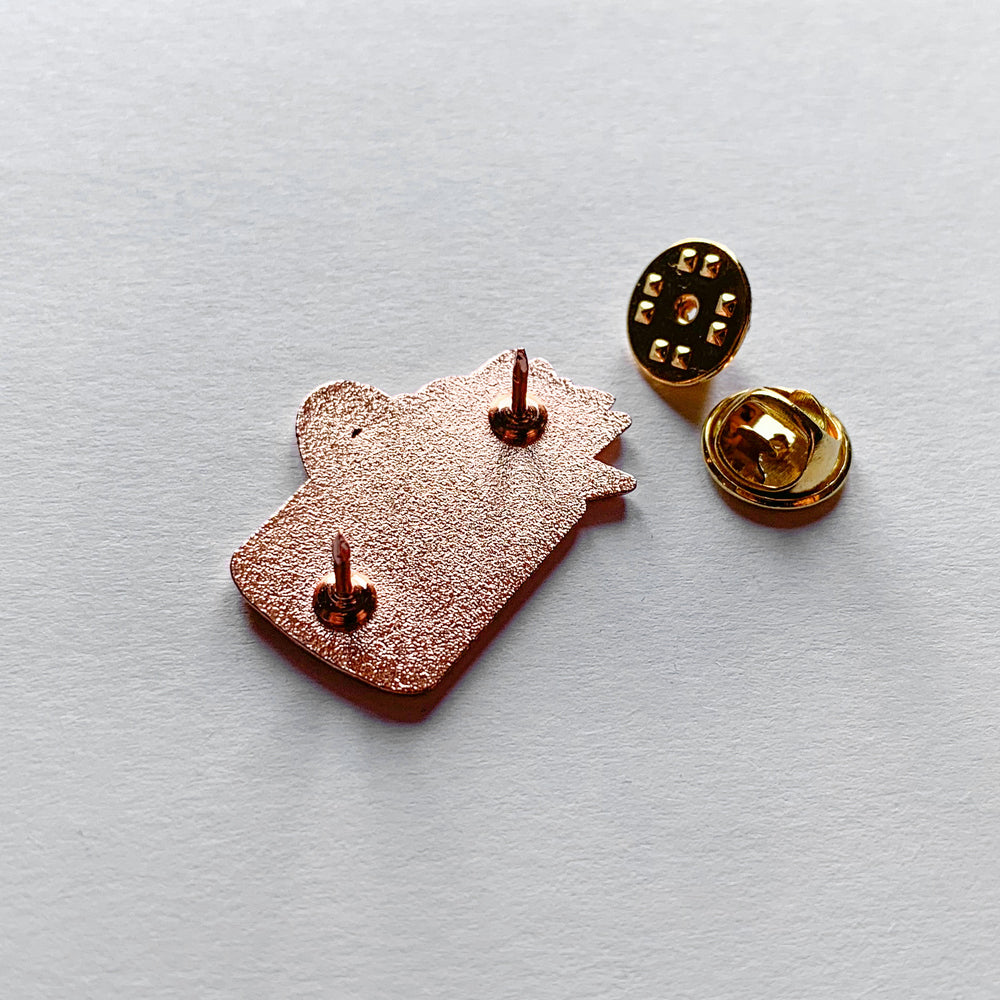 - 30mm (1.18") tall rose gold-plated enamel pin